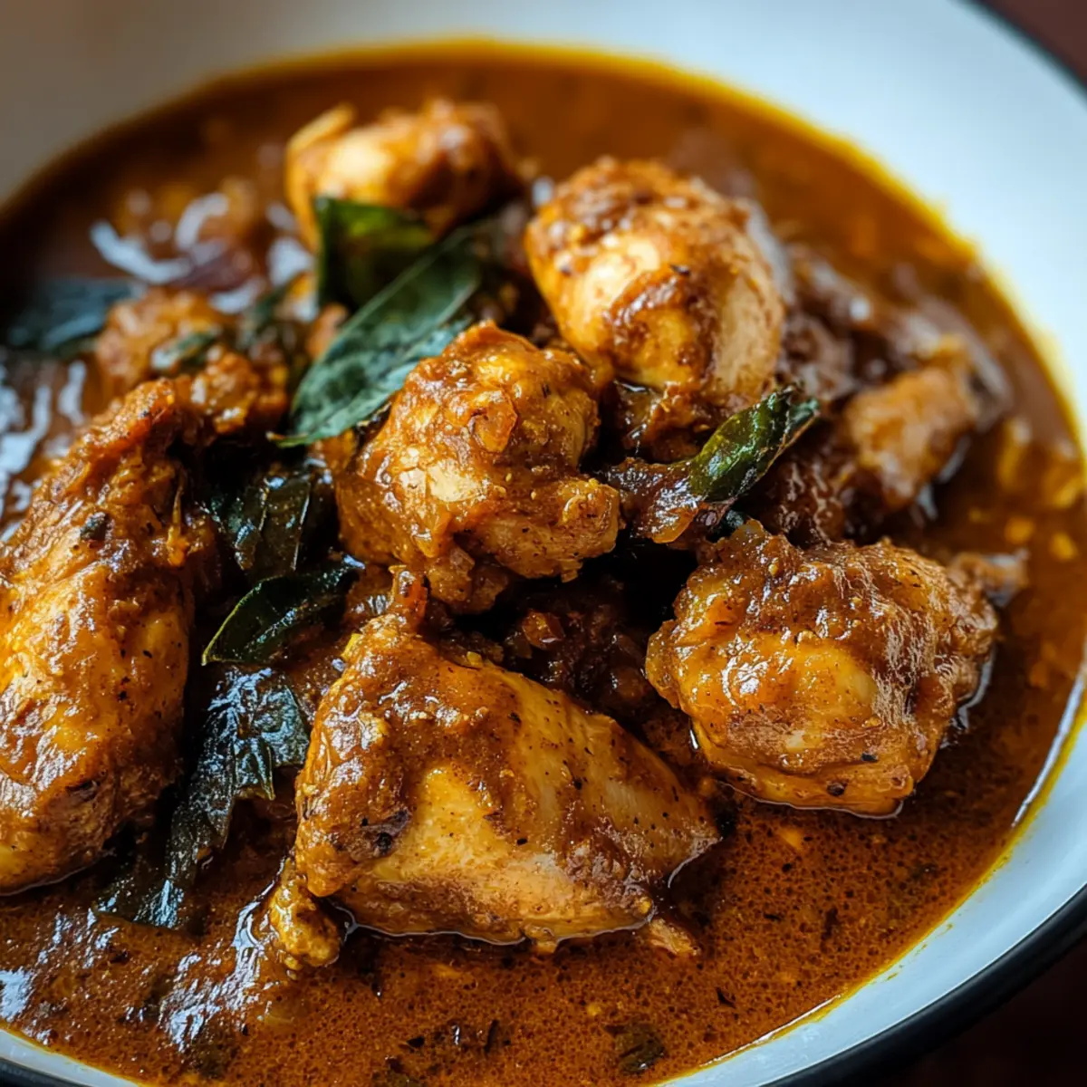 Als ich das erste Mal in einem kleinen Restaurant in Colombo saß, umhüllte mich sofort der tiefgründige Duft von Sri-lankischem Curry-Hühnchen. Die Mischung aus warmen Gewürzen, frisch gebratenen Curryblättern und der cremigen Kokosmilch sorgte dafür, dass ich mich augenblicklich wie zu Hause fühlte. Dieses Gericht ist nicht nur ein wahres Geschmackserlebnis, sondern auch perfekt für gesellige Anlässe – es begeistert einfach jeden am Tisch! Mit seinen anpassbaren Zutaten ist das Sri-lankische Curry-Hühnchen ein vielfältiges Highlight in deiner Küche. Ob du es herzhaft magst oder etwas mildere Aromen bevorzugst, dieses Rezept stellt sicher, dass es jeden beeindruckt. Bist du bereit, diese aromatische Köstlichkeit in deiner eigenen Küche zu zaubern?