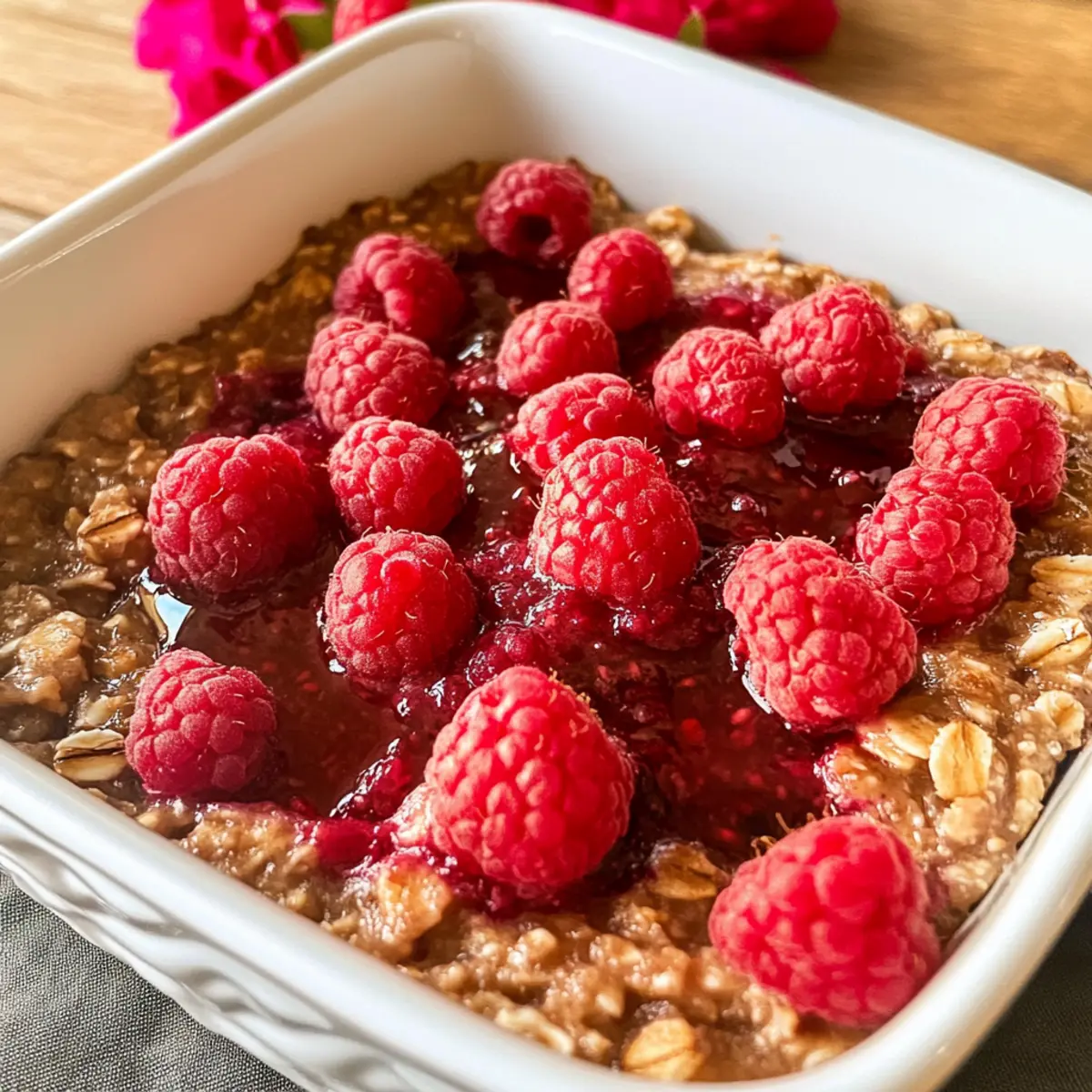 - Variation der Früchte: Passe die Himbeeren je nach Saison an und probiere andere Beeren oder Früchte aus. So bleibt deine vegane gebackene Haferflocken immer abwechslungsreich!