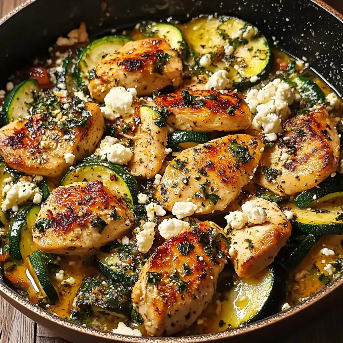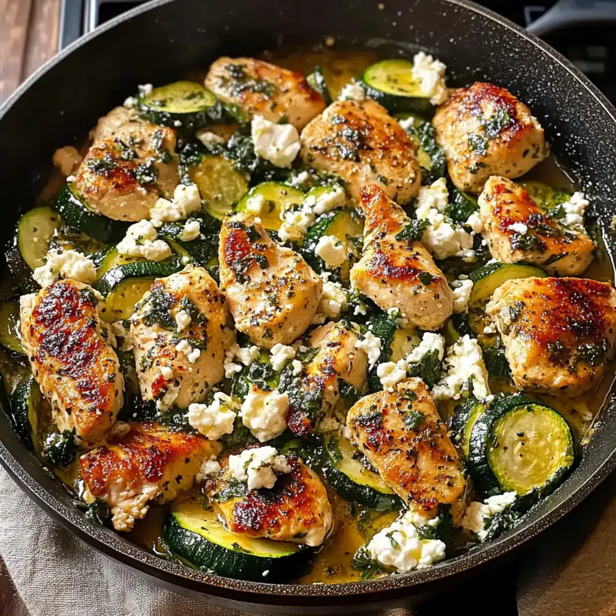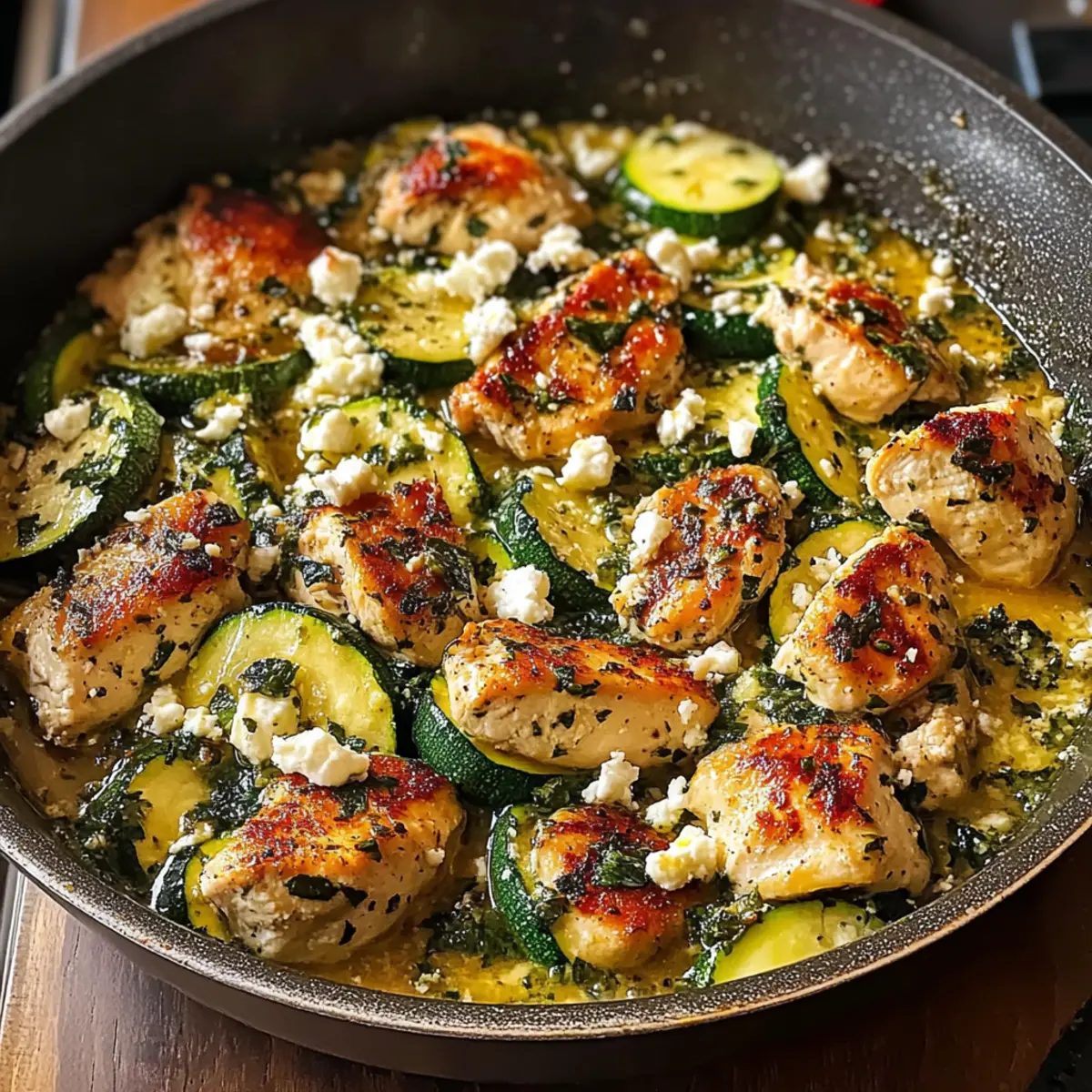Genieße diese Zucchini-Pfanne mit Hähnchen & Feta – einfach & lecker und entdecke, wie schnell und gesund ein köstliches Abendessen sein kann!