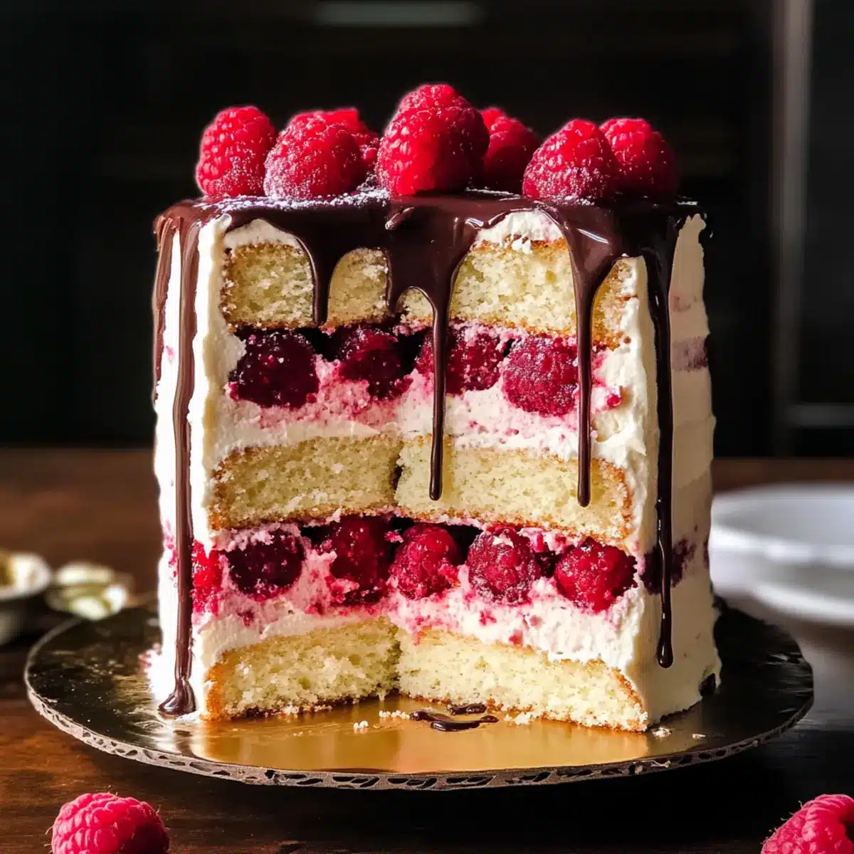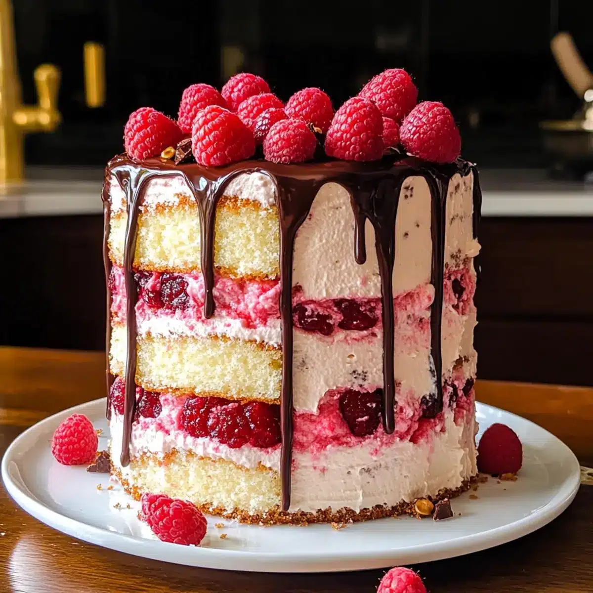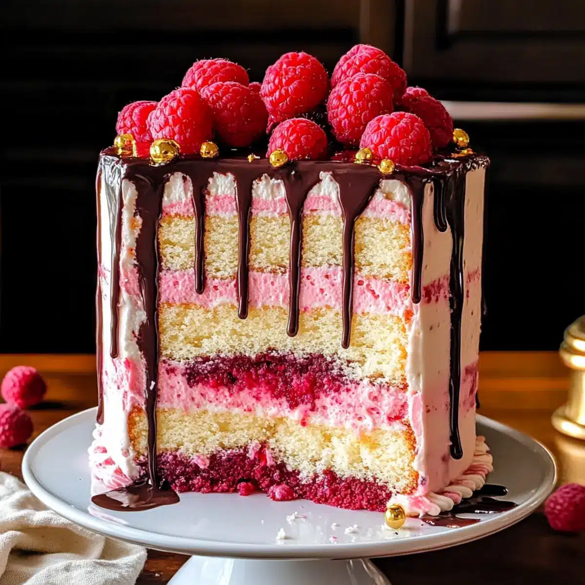 Zweistöckige Himbeer-Champagner-Torte für Feste